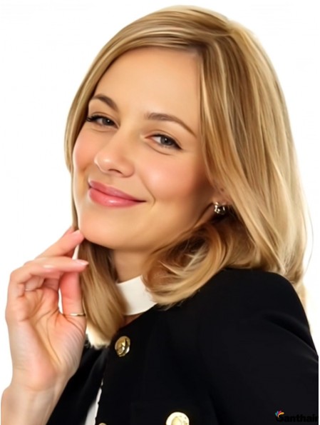 Blonde Echthaar-Perücke mit Spitzenfront und sanftem Wellenlook