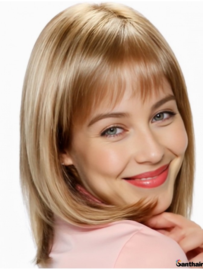 Echthaarperücke blond schulterlang mit Pony Lace Front Bob