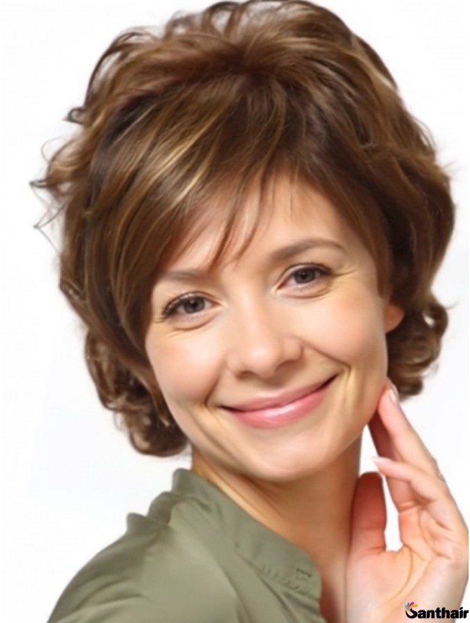 Echthaarperücke Kurz Wellig Layered – Realistischer Look