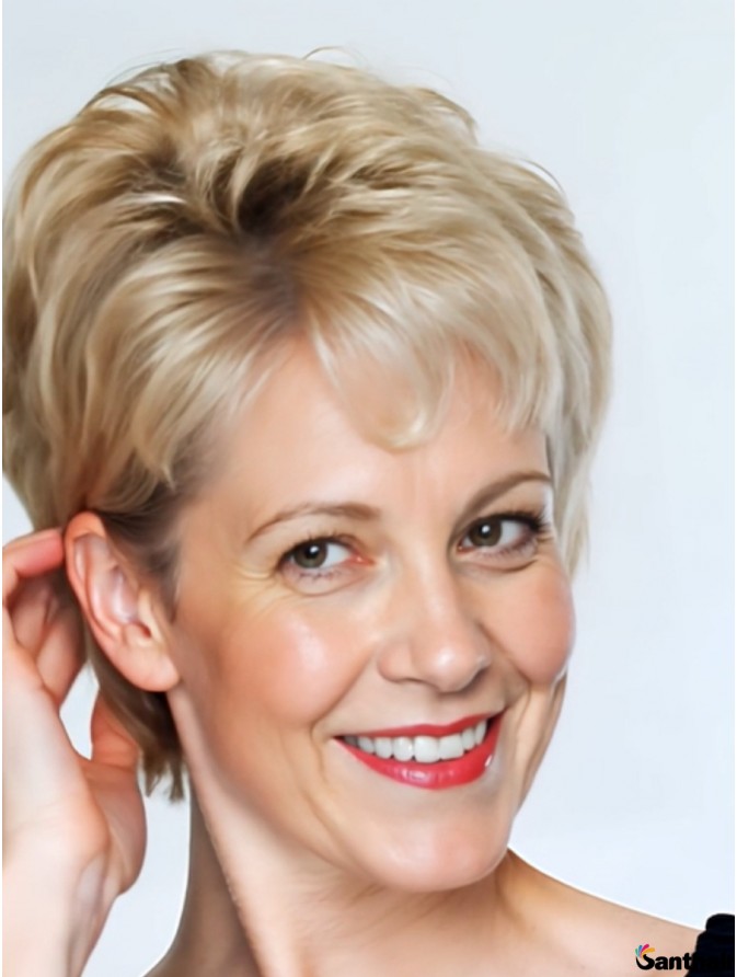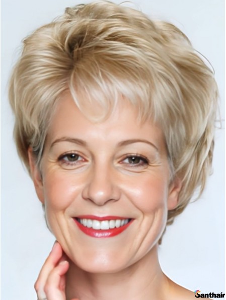 Echthaarperücke Kurz Wellig Blond Capless Style Damen